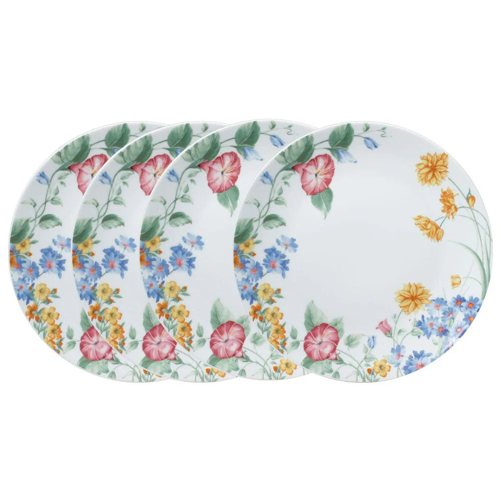 This Set of 4 Dinner Plate are ideal for your main meal, but they also make a great small serving platter. Crafted of porcelain. Microwave and dishwasher safe. Set of 4 dinner plates, each measures 10-1/2 inch diameter.