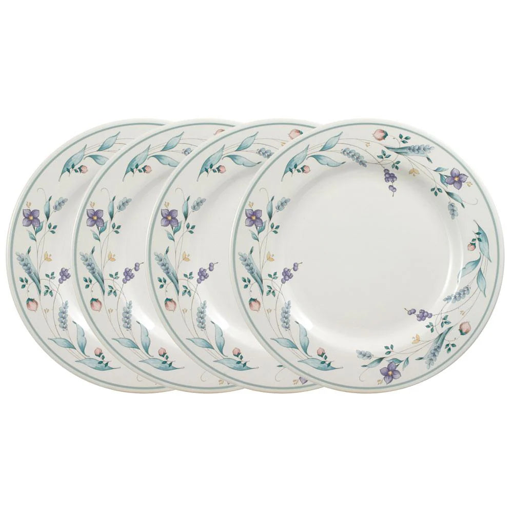 The most important piece of your dinnerware set! Not just for your main meal, but as a small serving plate or a charger under the luncheon plate. Crafted of stoneware. Microwave and dishwasher safe. Set of 4 dinner plates, each measures 10-1/2 inch diameter.