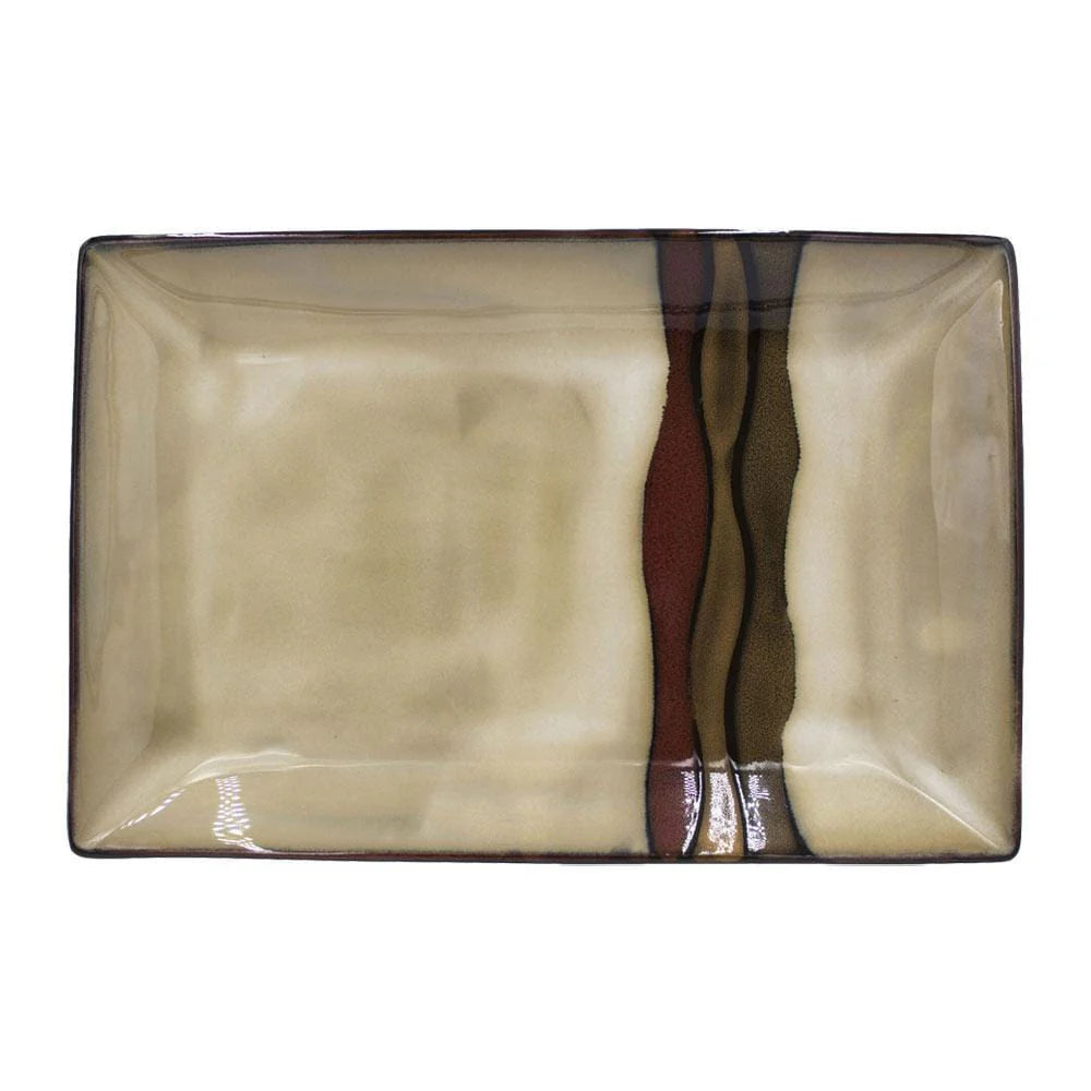 Exclusive Outlet Deal for our Pfaltzgraff Customers. This famous maker Aztec Set of 2 Platters features warm earth tone bands with a reactive glaze, and will add modern design and vibrant color to your table. Due to the nature and hand-crafted qualities of reactive glaze, no two pieces are exactly alike and will exhibit unique variations in color and pattern. Product may slightly differ from image shown.