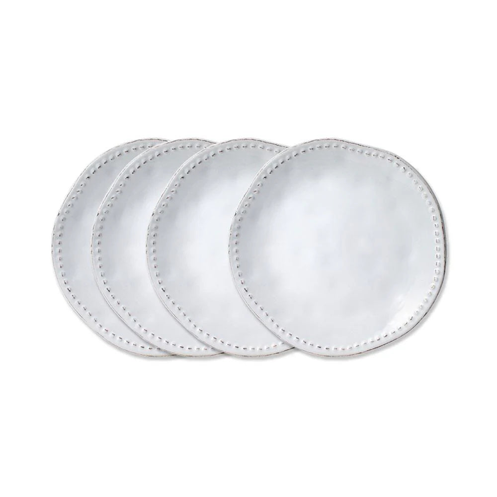 These salad plates are great for salads, but can also be used for a sandwich and chips, desserts or a snack. Crafted of stoneware. Microwave and dishwasher safe. Set of 4 salad plates, each measures 8 inch diameter.