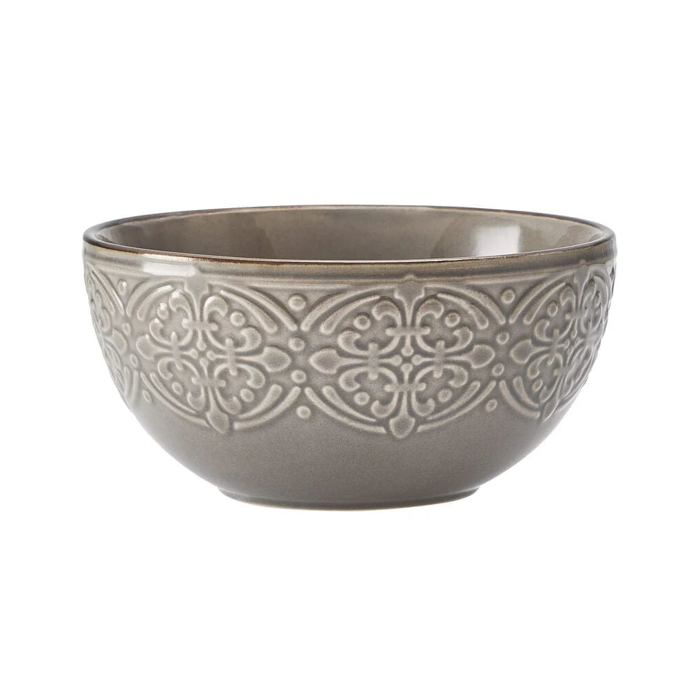 This Emma Dinnerware Set features embossed rims that are highlighted with a metallic-like rim color, in neutral gray color, that will complement any table and is perfect for everyday dining or for adding a touch of sophistication to casual gatherings.