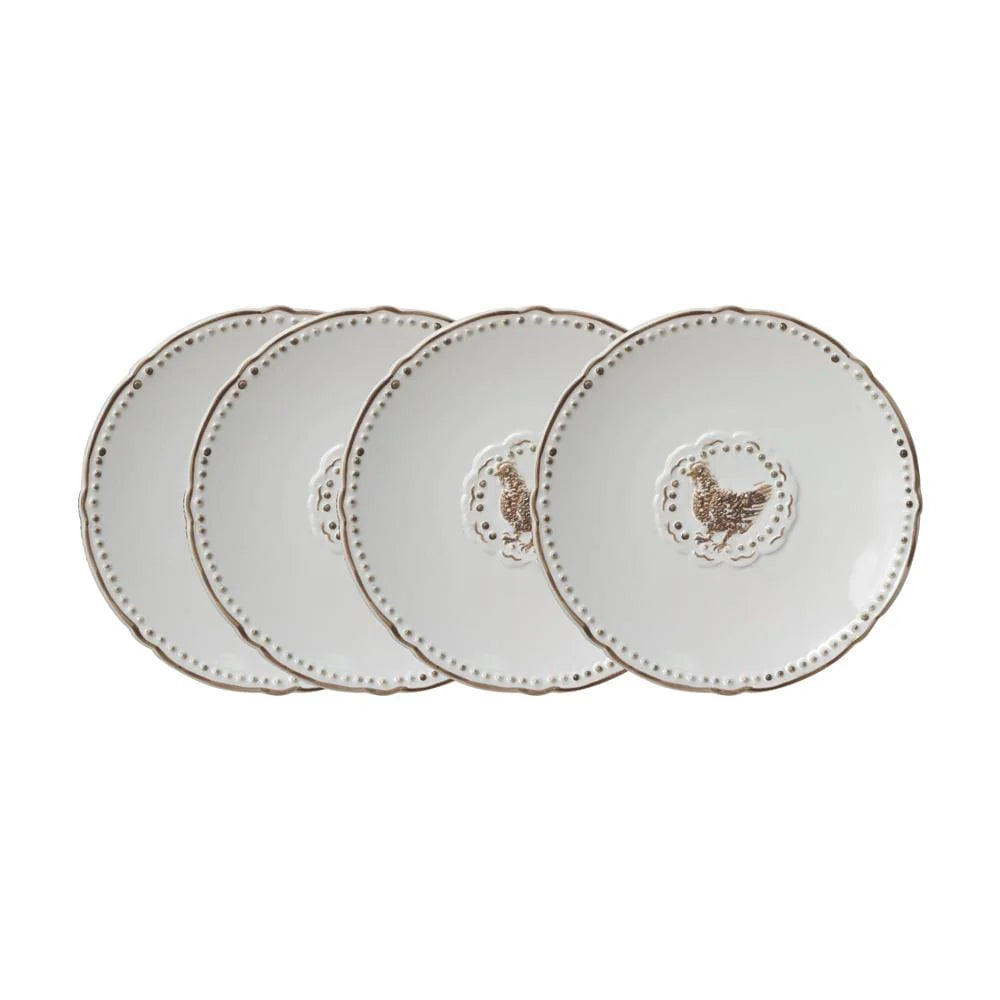 This Set of 4 Appetizer Plates are perfect for hors d'oeuvres, snacks or late night treats. Also great for apple dumplings, or for dishing out children's portions and the small size makes it easy for little hands to hold and carry. Crafted of stoneware. Microwave and dishwasher safe. Set of 4 appetizer plates, each measures 6 inch diameter.