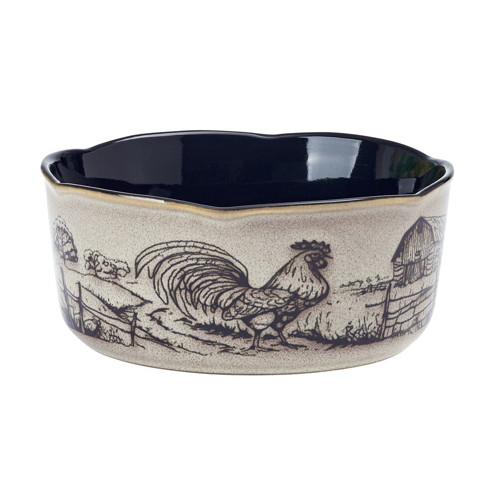This Farmyard Rooster 12-Piece Dinnerware Set celebrates rural life with a detailed depiction of roosters, a barn, and a farmhouse. Made for strength and durability and organically shaped in a warm, earthy shade of beige for a rustic look, this set is perfect for everyday dining or light entertaining.