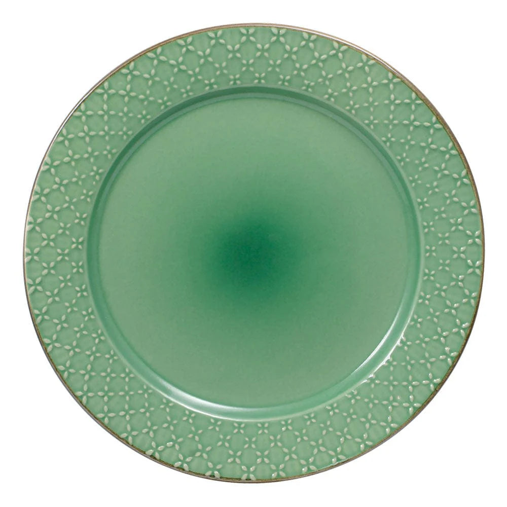 These dinner plates are ideal for your main meal, but also make a great small serving platter. Constructed of stoneware. Microwave and dishwasher safe. Set of 4 dinner plates, each measure 11 inch diameter.