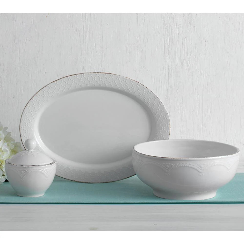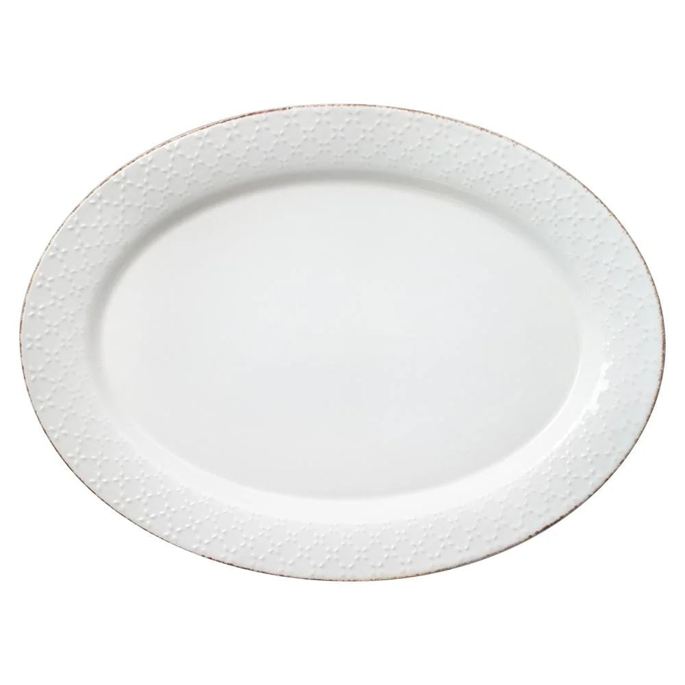 Use this Oval Platter to serve eggs with bacon and toast or stir fry with rice. Makes a handsome companion at a luncheon spread piled high with sandwiches or baked goodies. Crafted of stoneware. Microwave and dishwasher safe. Oval platter measures 14 inch long x 10-1/2 inch wide.