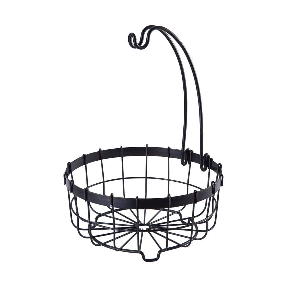 This Mikasa Gourmet Basics General Store Basket with Banana Hook has an antique black finish that will bring a classic touch to your decor. Handcrafted from wrought iron for long-lasting beauty even under rigorous use, this basket makes a great centerpiece to display fruits on a table and keep bananas from bruising. Measures 15-1/4 x 10-3/4 x 10-3/4 inches. Wipe clean with a soft, damp cloth. This product contains Carbon Black. For more information about chemicals in this product, visit www.lifetimebrands.com/ab1200