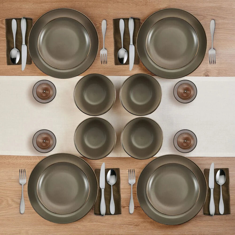 Bring elegance and sophistication to any dining occasion when you set your table with Hadlee Grey 12-Piece Dinnerware Set. The smoky gray centers are bold and contemporary, and the metallic band framing the rims adds a sleek, eye-catching accent. The modern style is ideal for both everyday dining and casual entertaining.