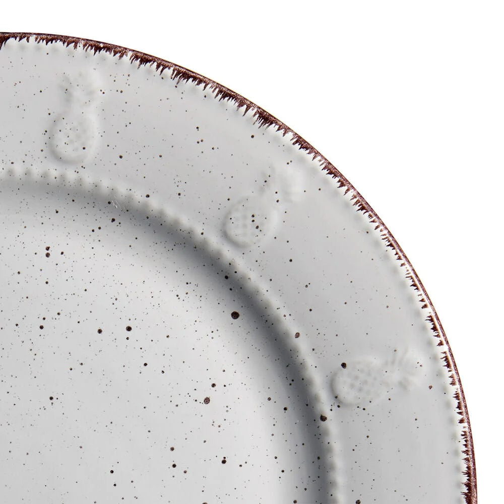 Crafted of Stoneware, featuring a reactive glaze. Due to the nature and hand-crafted qualities of reactive glaze, no two pieces are exactly alike and will exhibit unique variations in color and pattern. Product may slightly differ from image shown. 16 piece dinnerware set, service for four, includes (4) each of: 10-1/2 inch dinner plate, 8-inch salad plate, 5-3/4 inch diameter x 3 inch high (21 ounce) soup cereal bowl and 11 ounce mug. Microwave and dishwasher safe.