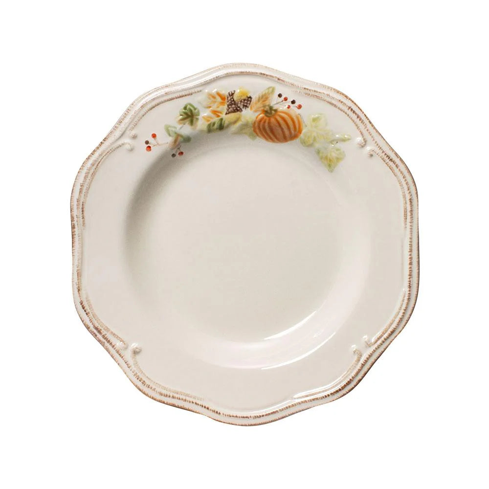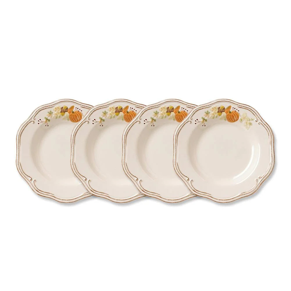 This could also be known as the 'bread' plate, 'dessert' plate, 'piece of fruit' plate, or the 'sneaking a snack' plate. Crafted of stoneware. Microwave and dishwasher safe. Set of 4 salad plates, each measures 9 inch diameter.