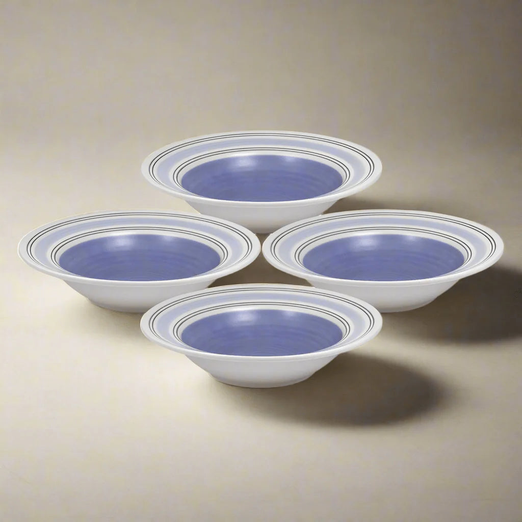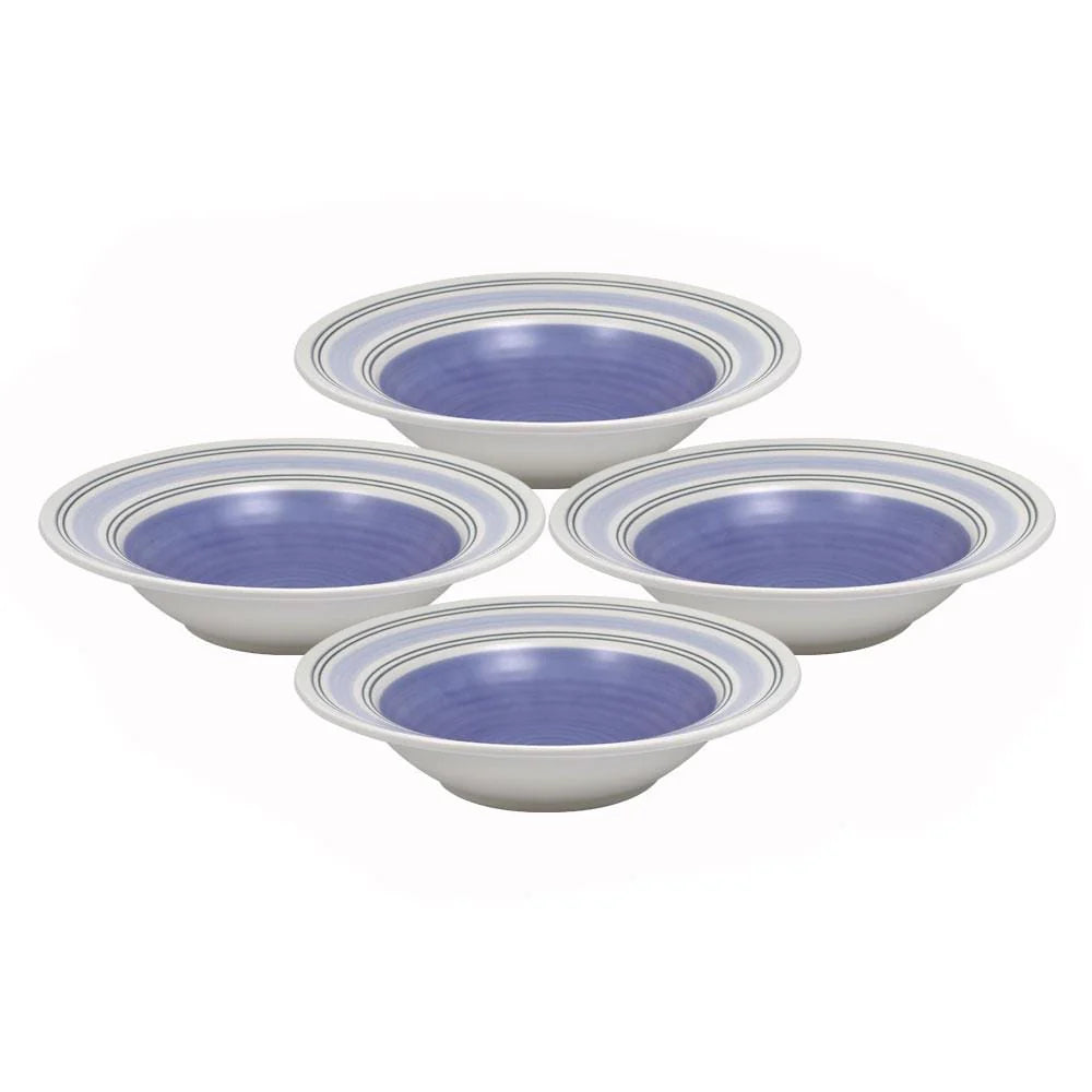 The wide rim on this generous bowl was designed for balancing a piece of bread or crackers to accompany a hearty bowl of soup. But you'll use this bowl for salads, pasta, and even ice cream - this bowl holds lots of tasty toppings. Constructed of stoneware. Microwave and dishwasher safe. Set of 4 wide rim soup bowls, each measures 9 inch diameter x 2 inch high and holds 24 ounces (to the rim).