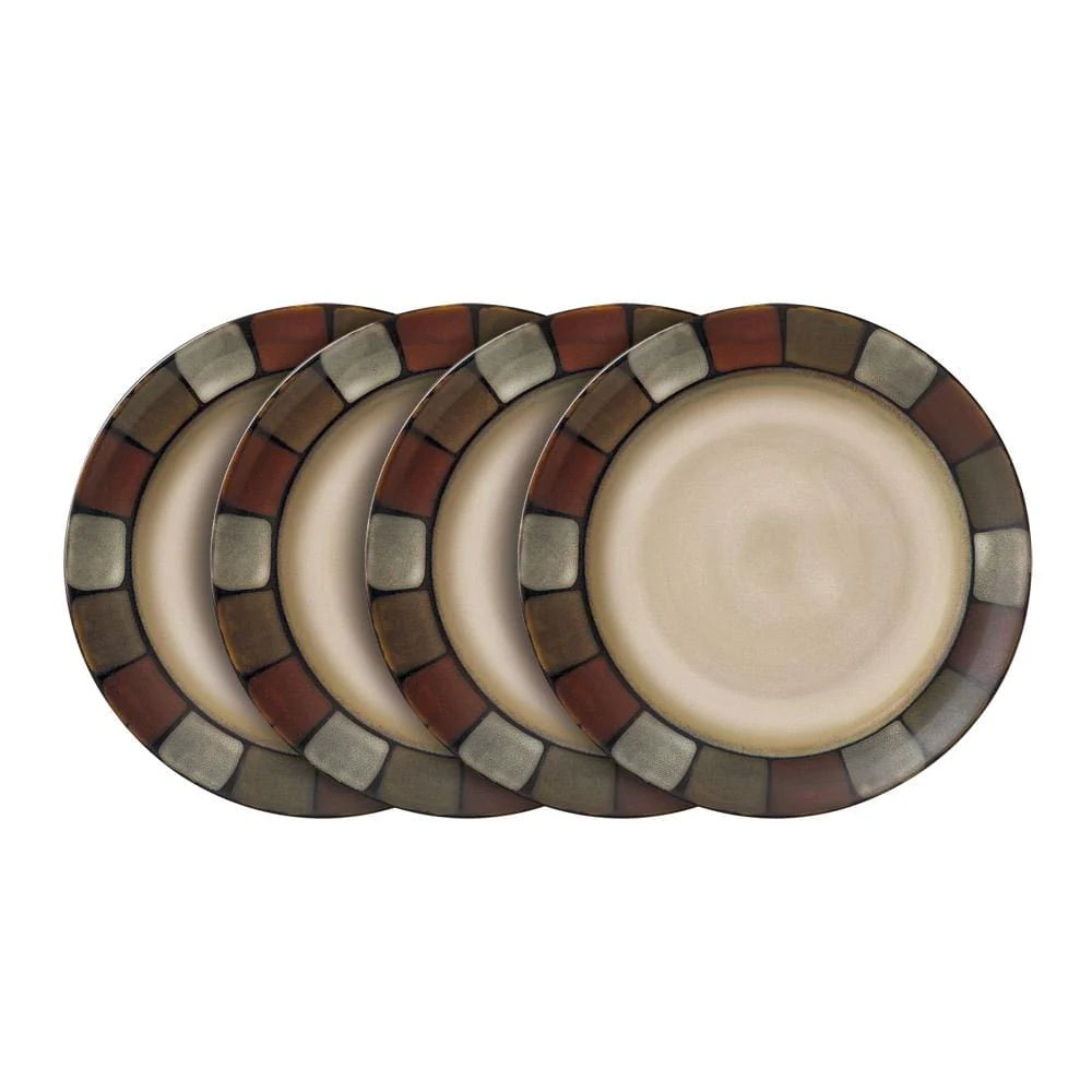 Crafted of Stoneware, featuring a reactive glaze. Due to the nature and hand-crafted qualities of reactive glaze, no two pieces are exactly alike and will exhibit unique variations in color and pattern. Product may slightly differ from image shown. The most important piece of your dinnerware set! Not just for your main meal, but as a small serving plate. Be sure to have plenty on hand for family celebrations or when extra guests arrive. Microwave and dishwasher safe. Set of 4 dinner plates, each measures 11 inch diameter.