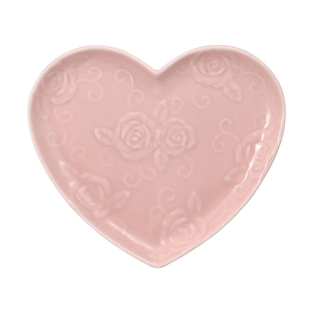Add a tender touch to meals and snacks with this Pink Heart Shaped Plate. Features an embossed rose design on a solid pink background and will bring a "loving-touch" to any occasion. Constructed of stoneware. Microwave and dishwasher safe. Heart plate measures 8-1/4 inch long x 9 inch wide.