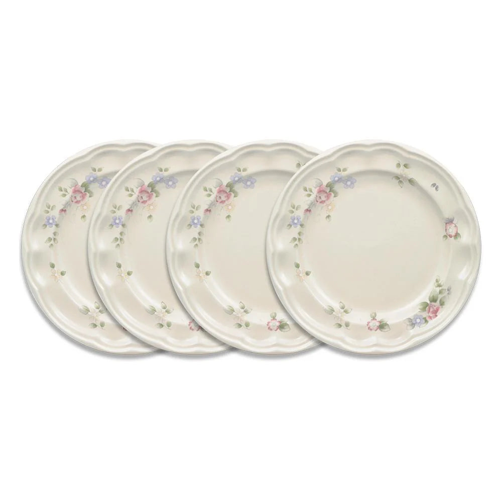 The luncheon plate is really a necessary piece to have. Sized between the dinner and salad plates, this size is perfect for a smaller meal, sandwich and chips, or as a charger under a soup bowl. Constructed of stoneware. Microwave and dishwasher safe. Set of 4 luncheon plates, each measures 9 inch diameter.