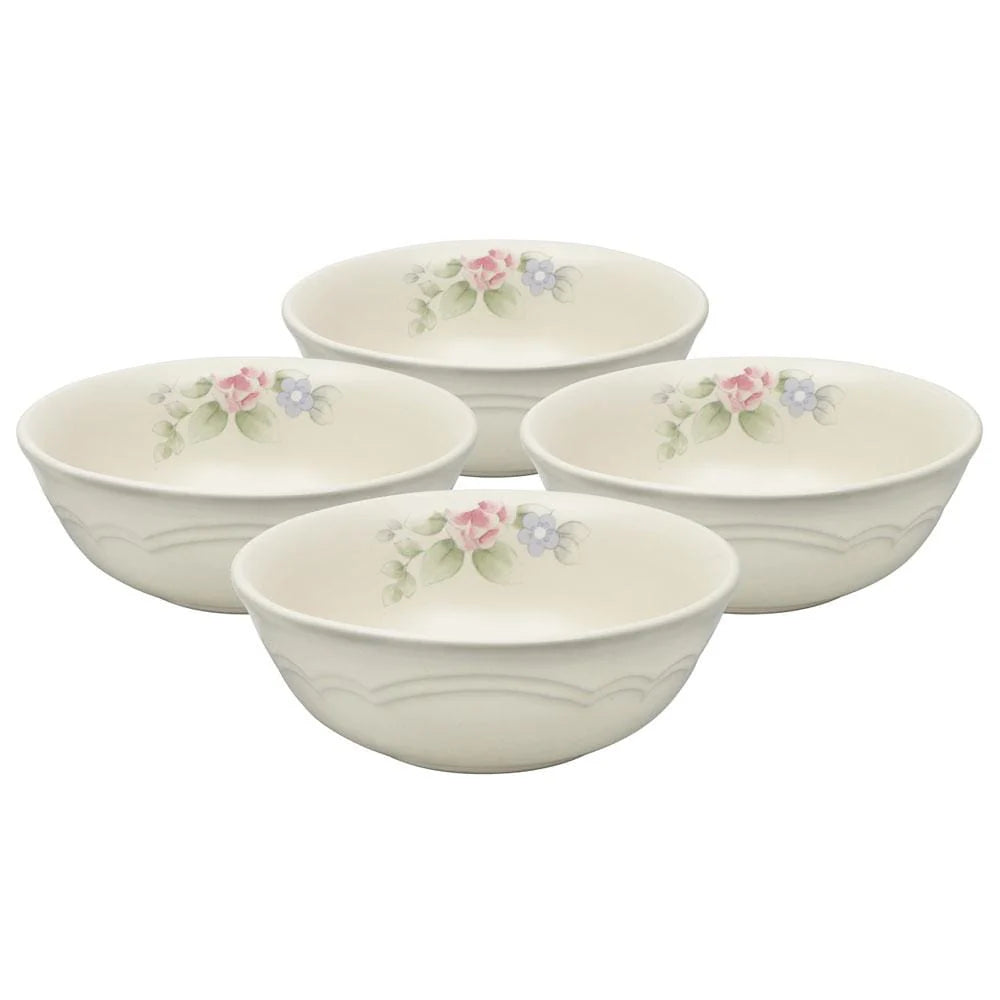 From cereal in the morning to soup at lunch and ice cream for dessert, this bowl is a "must-have". Constructed of stoneware. Microwave and dishwasher safe. Set of 4 soup cereal bowls, each holds 17 ounces.