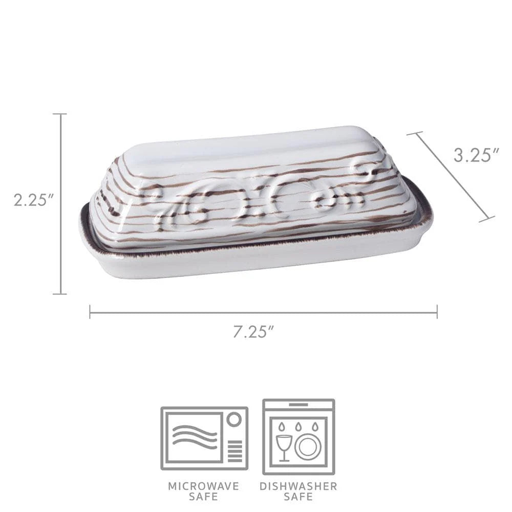 This Covered Butter Dish is designed to hold one stick of butter or margarine, and covering your butter will keep the freshness and refrigerator odors out.