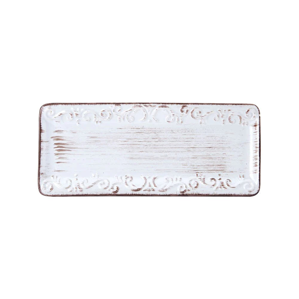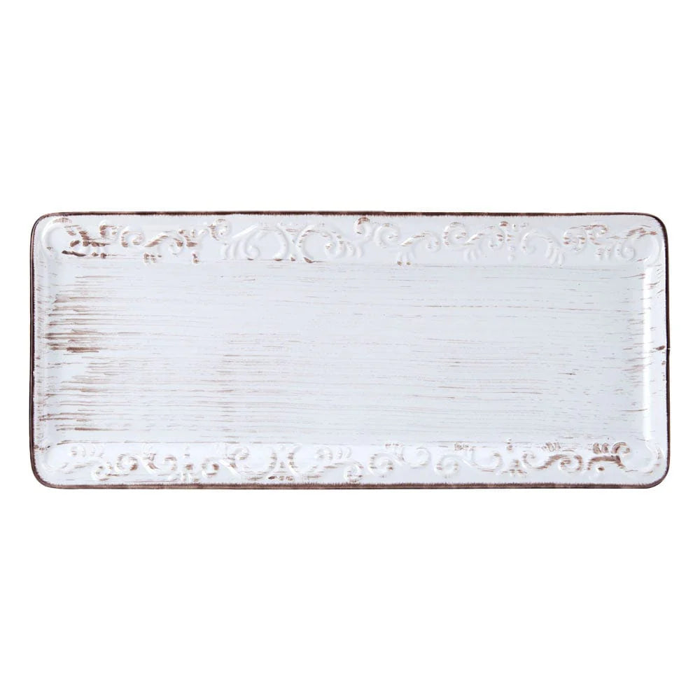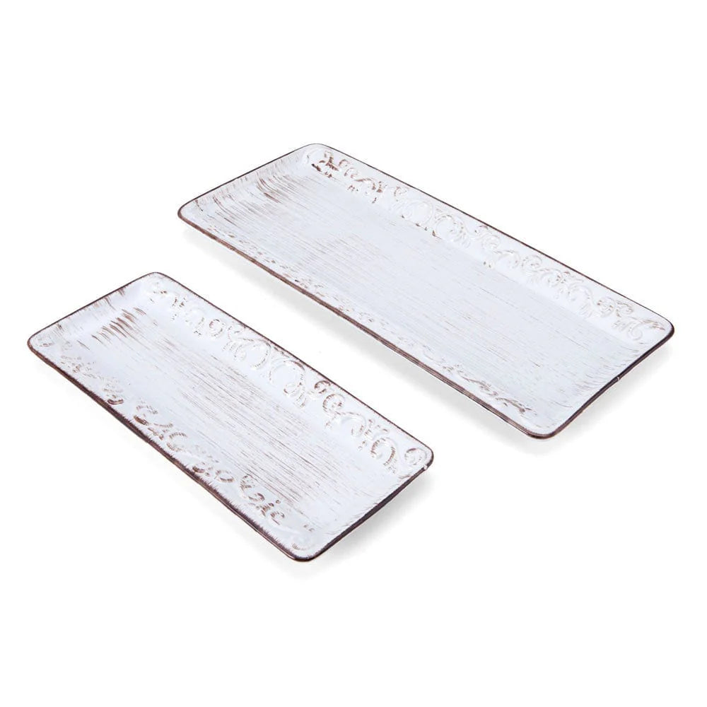 This Trellis White Set of 2 Platters feature a traditional, intricate embossing with an antiqued finish, accented by dark markings that give it a worn look, and will make a great addition to your table setting.