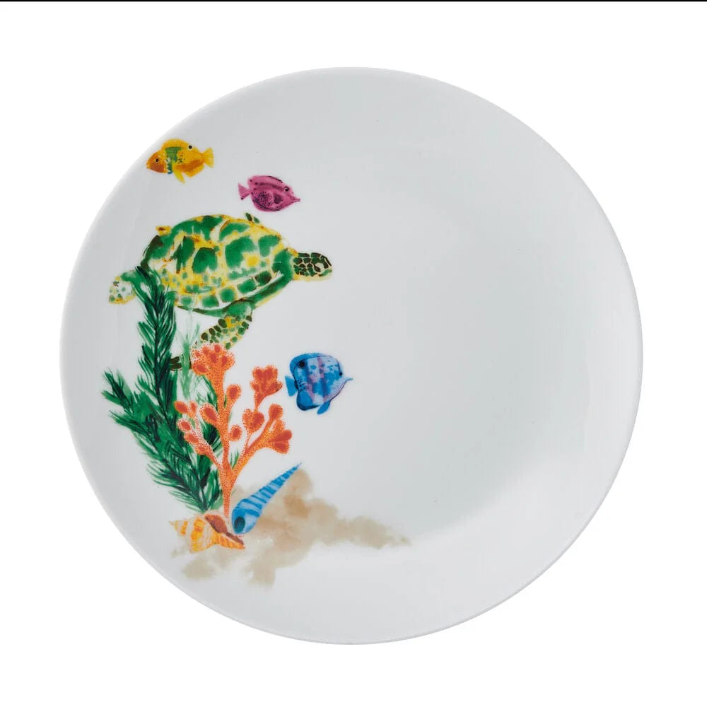 From the Studio Nova Brand, celebrate the wonders of the sea with this 12-Piece Underwater Life Dinnerware Set. This playful, coupe-shaped dinnerware brightens your tabletop with a depiction of colorful turtles and fish swimming in the ocean, making this collection perfect for everyday dining or light entertaining.