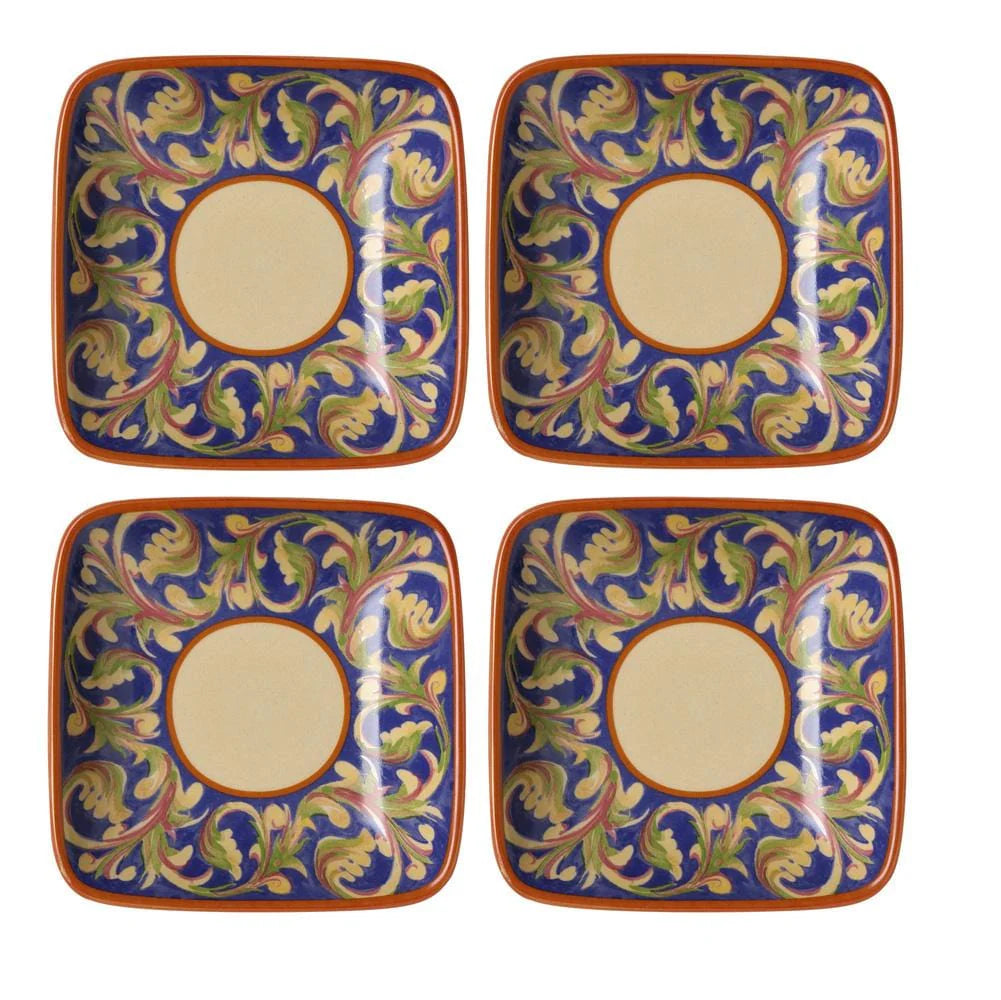 These square tapas plates are perfect for side dishes, petit fours or small desserts, but can also serve double-duty as bread plates or hors d'oeuvres plates. Microwave and dishwasher safe. Set of 4 ceramic wine tapas plates, each measures 4-1/2 inch square.