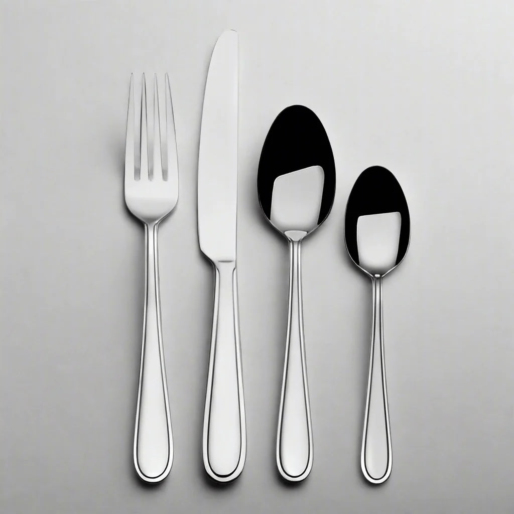• 16 piece set includes 4 each of : dinner knives, dinner spoons, dinner forks, teaspoons and wire caddy.