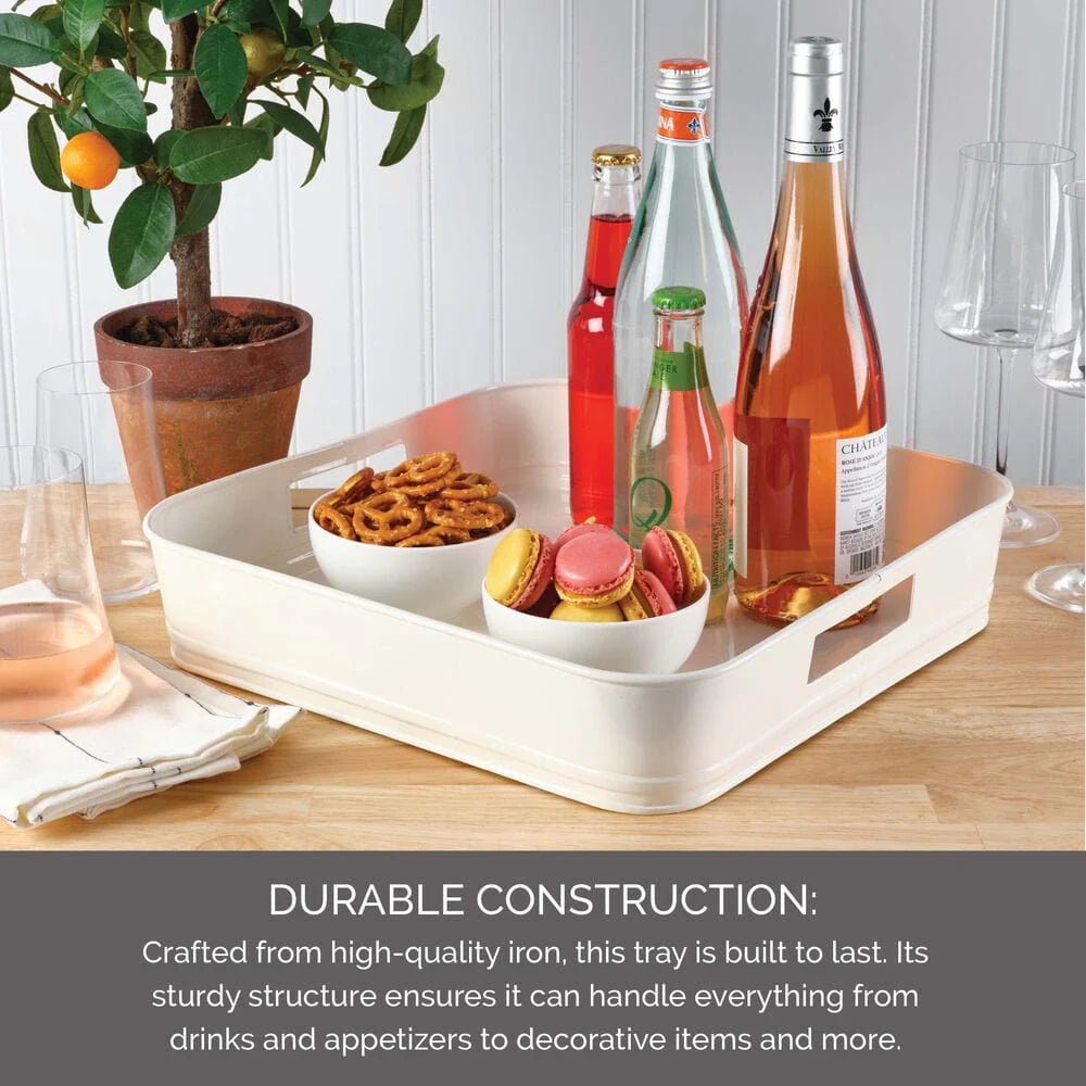 From our family of brands, this Towle Living versatile serving tray is designed to make a statement, whether you’re hosting a lavish party or enjoying a casual gathering with friends. Perfect for everyday use or special occasions, this serving tray is a must-have for any home. Its simple elegance makes it suitable for serving food and beverages or for use as a stylish decorative piece. This square tray offers ample space for serving a variety of items, making it ideal for both intimate gatherings and larger celebrations.