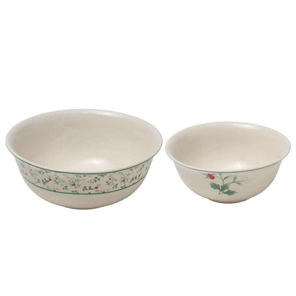 This Winterberry Set of 2 Holly Nesting Serving Bowls are adorned with our festive red and green Winterberry holly berry pattern motif, and features the design large and bold on the one bowl and small and intricate on the other, and will add a festive, holiday accent to your table all season long.