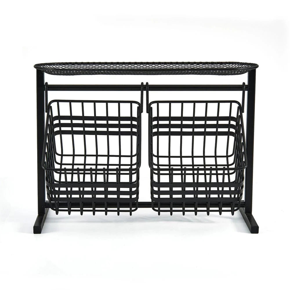 From the Gourmet Basics by Mikasa Collection, this Wrapped Band 2 Tier Storage Basket can hold multiple items while taking up minimal counter or table space. Air flows through the open-wire design allowing fruits to ripen evenly, and the classic black finish will compliment any decor.