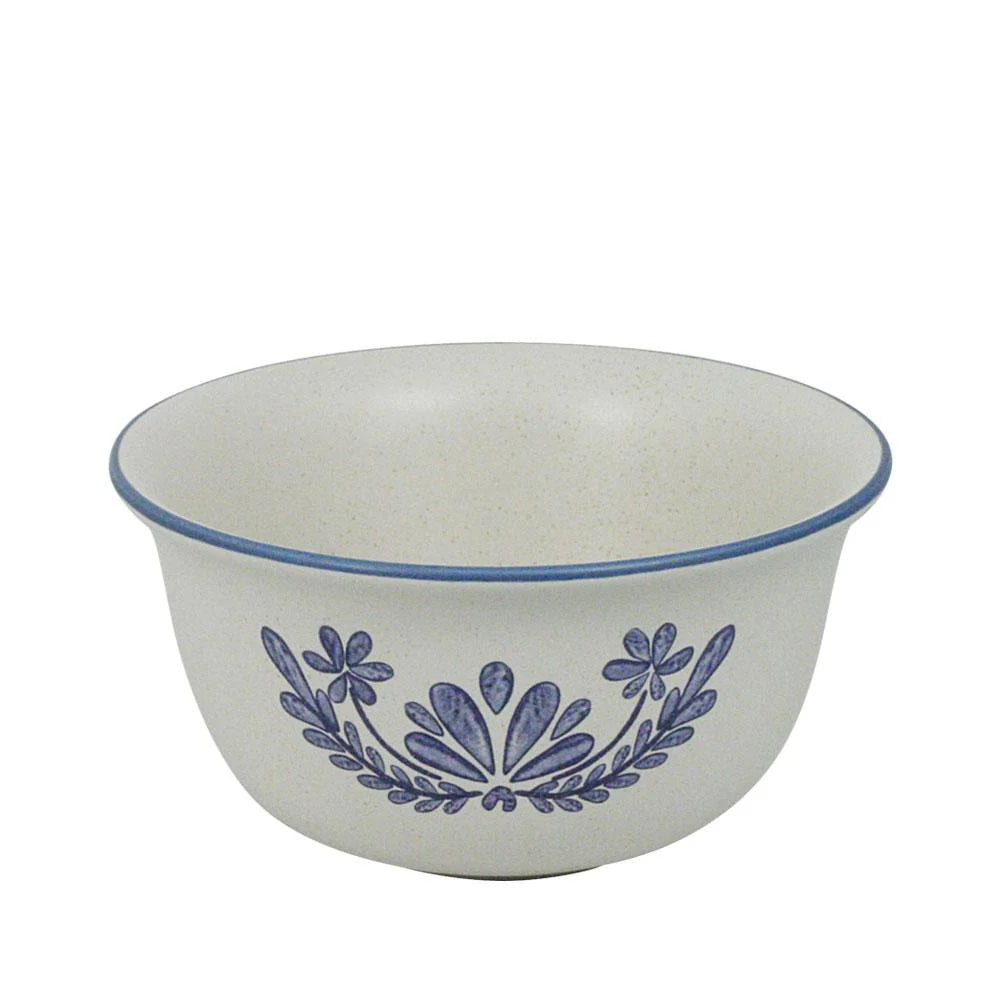 The deeper design of this bowl keeps cereal, soup or desserts in the bowl, not on the table. Constructed of stoneware. Microwave and dishwasher safe. Deep soup and cereal bowl measures 6 inch diameter and holds 24 ounces.