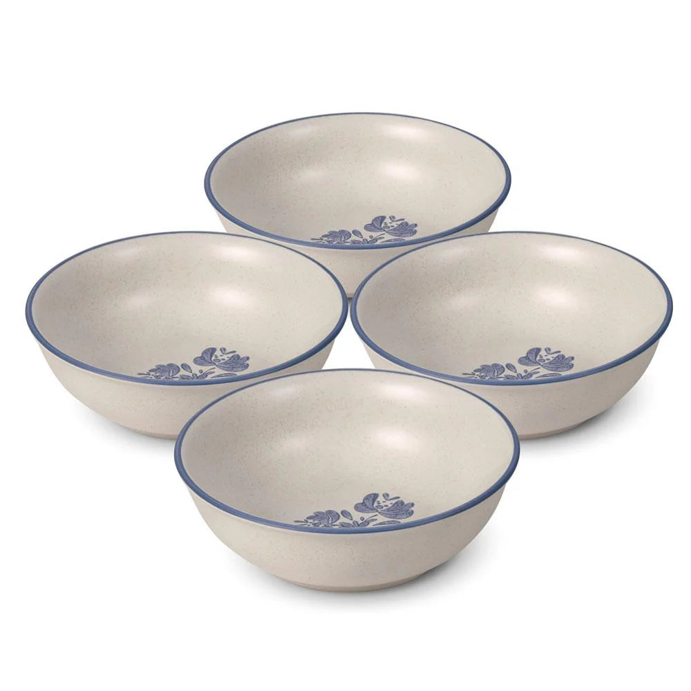 From cereal in the morning to soup at lunch and ice cream for dessert, this bowl is a "must-have". Constructed of stoneware. Microwave and dishwasher safe. Set of 4 soup cereal bowls, each measures 6 inch diameter and holds 12 ounces.